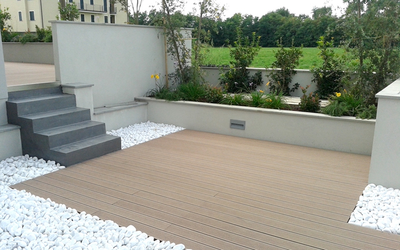 Plastic wood flooring is composed of wood fibers and environmentally friendly polymer materials. Its environmental advantage lies in the extensive recycling of waste wood and plastic, reducing resource consumption and waste pollution. Durability comes from material properties: it combines the texture of wood with the toughness of plastic, is waterproof and moisture-proof, is not easily deformed or cracked, and can resist insect infestation and mold. The surface wear-resistant layer enables it to withstand daily wear and maintain stable color over long-term use. This material performs particularly well in harsh outdoor environments, with a lifespan far exceeding that of ordinary wood.